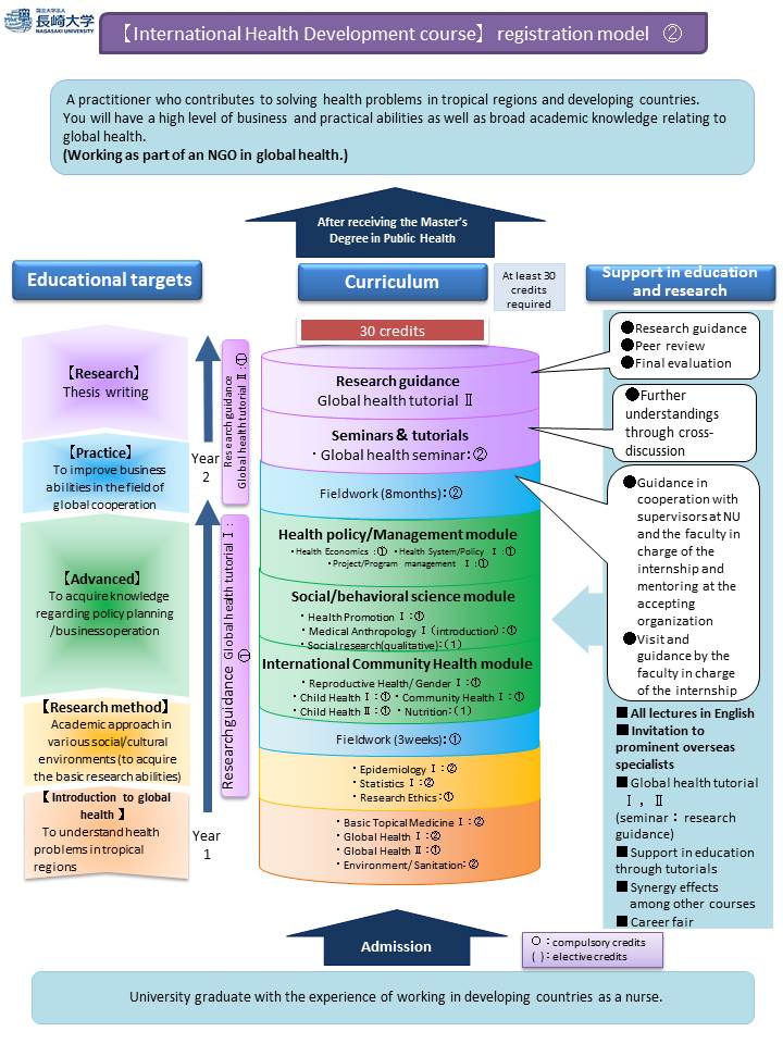 - Long-term Practicum during the second year, which is a combination of internship at a project or organization outside Japan and master research project, is compulsory for all MPH studnets.